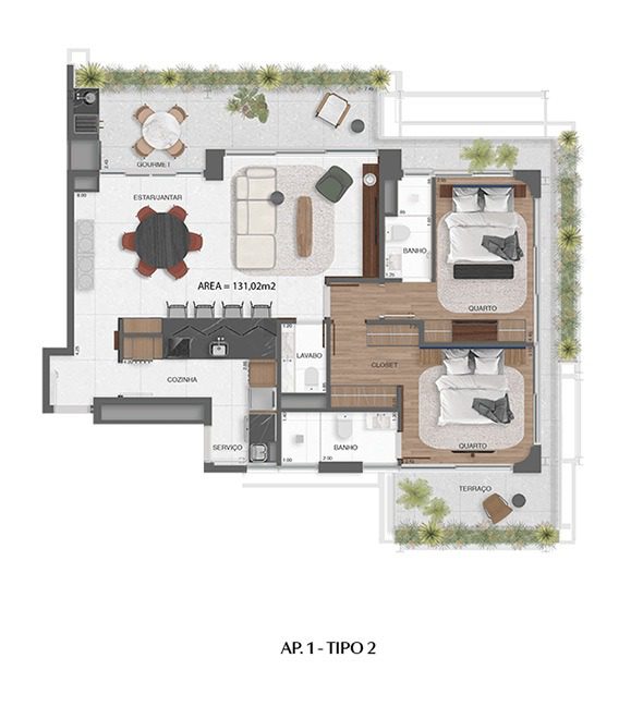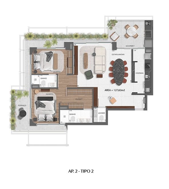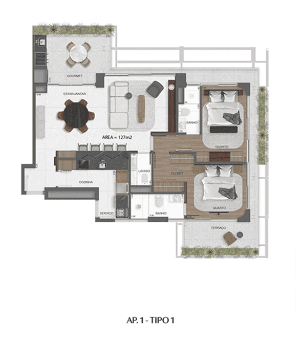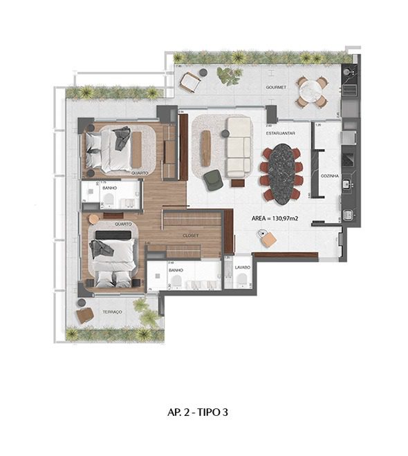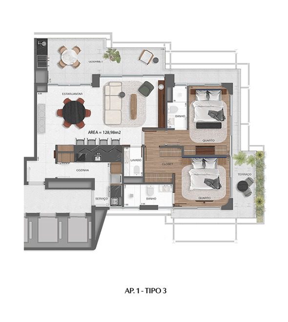 Apartamento Tipo — 123 m² a 133 m²